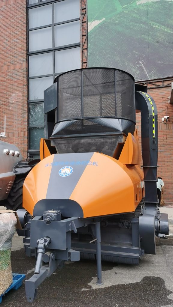 本機是公司研發(fā)的一款圓捆機。實現(xiàn)撿拾、粉碎、除土、揉搓、除塵、清選、打包一次完成。日產(chǎn)能35噸200捆,收地干凈,不需二次加工牛可直接食用。實現(xiàn)全智能全自動整車電控連續(xù)出包不停車,成包過程中、鋼滾縫隙、漏料再回收除塵,保證地面打包凈度。結(jié)構簡單故障率低,全態(tài)、秸稈收集,除土率高,全作物打包,揉絲度可調(diào),包捆密度國內(nèi)最大。